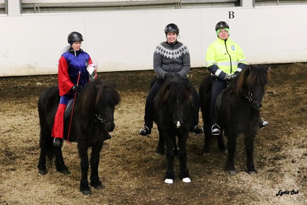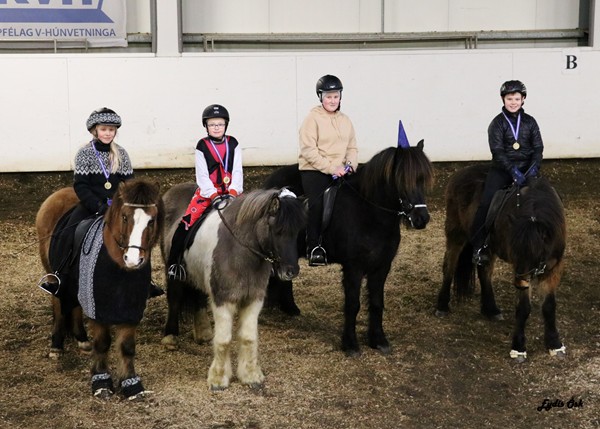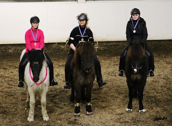 Í 3.flokk og barnaflokk verður keppt í V5, forkeppnin er riðin skv. stjórn þular: Frjáls ferð á tölti - Hægt til milliferðar